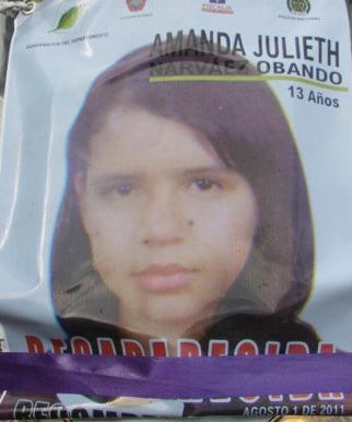Leszli Kálli, la Twittera, se refiere a la niña Amanda Julieth Narváez Obando, de 13 años, desaparecida en la ciudad de Pasto, departamento de Nariño, al sur de Colombia, el 01 de agosto de 2011, una más de las secuestradas o desaparecidas invisibles que hay en el país.