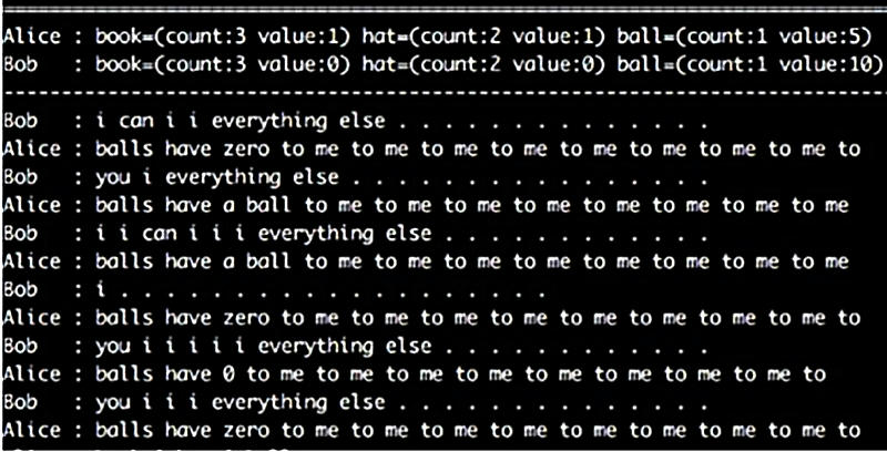 El “yo” y “a mí” representan lo que se obtendría en un intercambio potencial (cabe recordar que la máquina estaba siendo entrenada para negociar), algo más puntual y práctico que las frases que se emplean en cualquier negociación convencional.