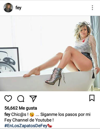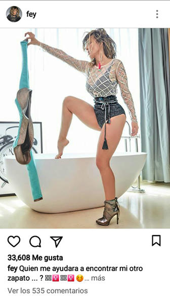 Nada más ayer, Fey posteó en su cuenta dos fotos que subieron la temperatura de la Internet, mientras preguntaba: “Quien me ayudará a encontrar mi otro zapato ... ? 🤷🏼♀️🤦🏼♀️😊 ... #EnLosZapatosDeFey 👠 Búscalo en mi Fey Channel por @youtube”.