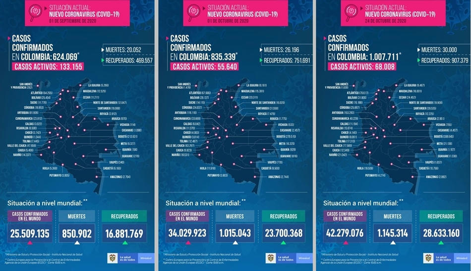 Colombia alcanzó los 30 mil muertos por Covid-19 y superó el millón de contagios
