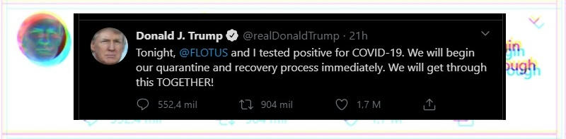 En la noche del jueves se conoció que el presidente Donald Trump y su esposa, la primera Dama, Melania habían resultado positivos para Covid-19, así lo anunció el propio presidente en su cuenta de Twitter donde escribió “Esta noche @FLOTUS (Melania Trump) y yo, dimos positivo en la prueba para COVID-19. Nosotros empezaremos nuestra cuarentena y proceso de recuperación inmediatamente. Nosotros superaremos esto JUNTOS”.