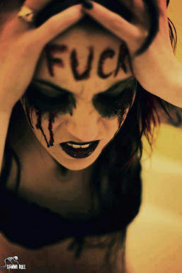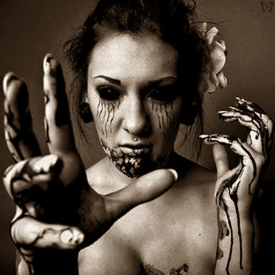 Una de las imágenes, la de una chica muy joven, con rostro de expresión vacua y las manos ensangrentadas que tiene ante sí el muñeco de un bebe cubierto de sangre, conduce a páginas web como https://whisperingdark.wordpress.com, (susurrando en la oscuridad), que contiene juegos macabros para realizar en equipo y que empieza con la leyenda: