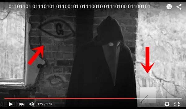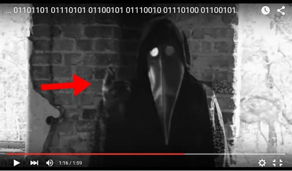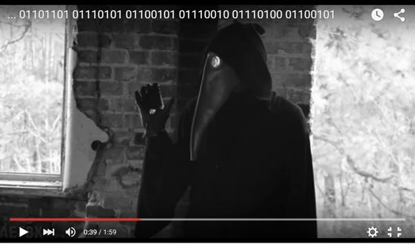 Así ocurre con un extraño video en blanco y negro, en el que se observa a un hombre con ropajes negros y una hierática mascara, mientras se escucha un ruido de fondo que bien podría ser el canto enloquecedor de Cthulhu, la aborrecible deidad primigenia de la saga escrita por H.P. Lovecraft, y van apareciendo mensajes arcanos y subliminales en códigos binarios, en código morse, jeroglíficos, sonidos, etc.