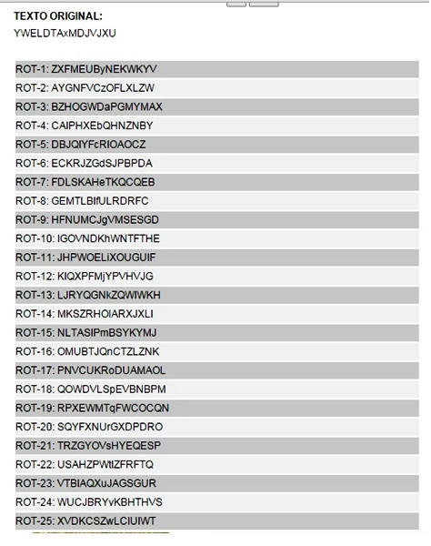 Ahora bien, antes de abandonar el viejo cifrado Cesar, quisimos aplicarlo a los dos bloques de texto: YWELDTAxMDJVJXU, y, wVWFjZ2E= que si los unimos a 11B-X-1371, vendría a significar que allí está la respuesta, incluso tal vez sea la clave para desencriptar 11B-X-1371.