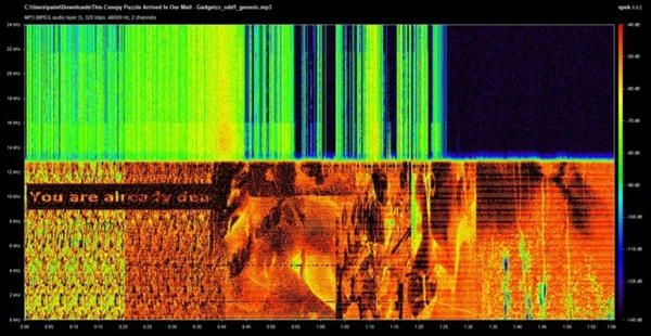 Se trata del sonido o ruido que se escucha al fondo del video. Al parecer alguien en Reddit puso el sonido en un espectrograma y el resultado es otro mensaje oculto, que algunos traducen como “Ya estáis muertos”.