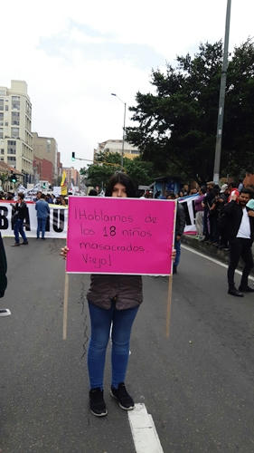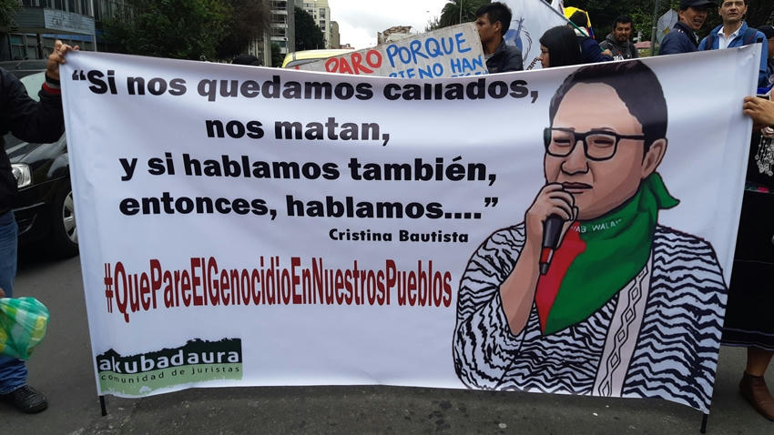 “En nombre de los guardias indígenas asesinados en el Cauca, en Chocó y en Nariño, vamos a rendir este homenaje de reencuentro […] con los que están luchando en las ciudades” dijo Aída Quilcué, consejera de la Organización Nacional Indígena de Colombia (ONIC), enfatizando los objetivos de las organizaciones indígenas en el gran paro nacional.