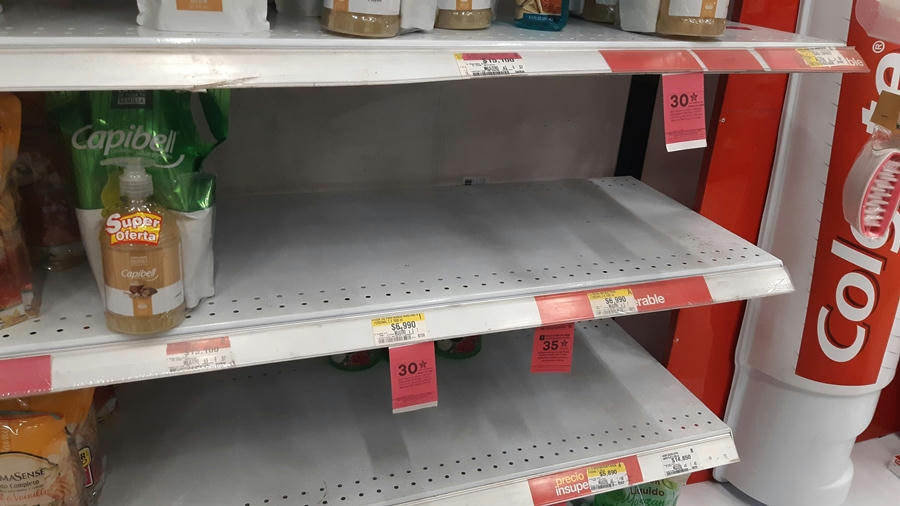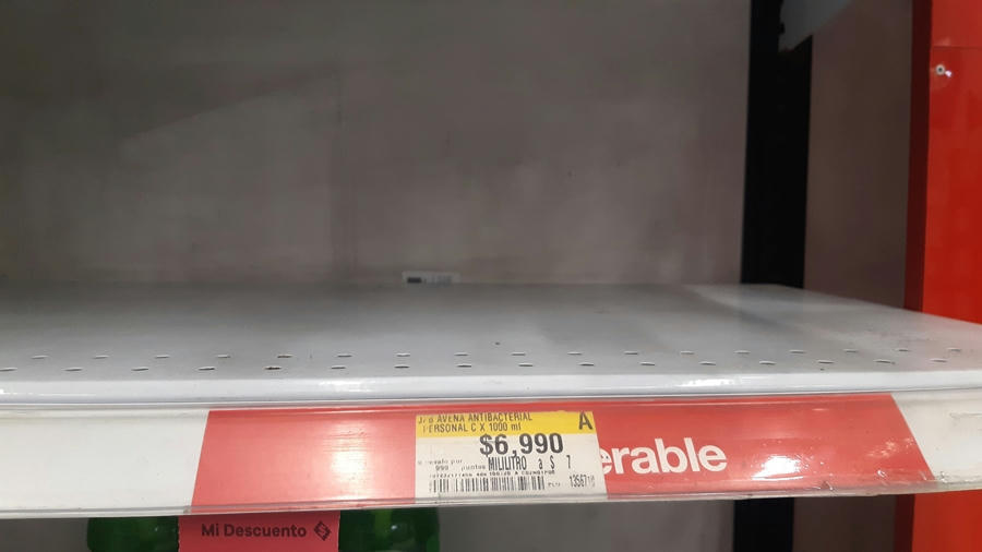 Lo primero que desapareció de las góndolas fueron los tapabocas incluidos los hoy extintos N95. Luego el Gel Antibacterial desapareció de Locatel.