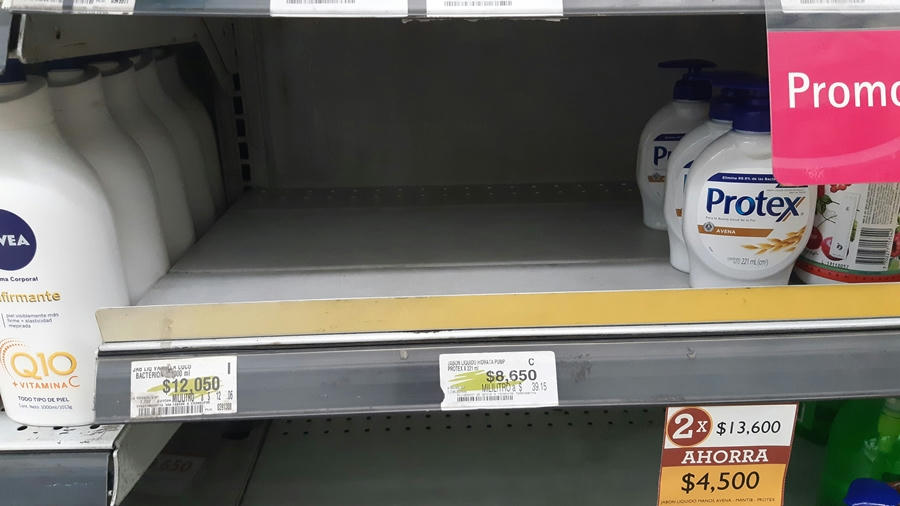 A esto, con diferencia de pocos días, le siguió el alcohol etílico, y después el jabón antibacterial y luego el jabón líquido.