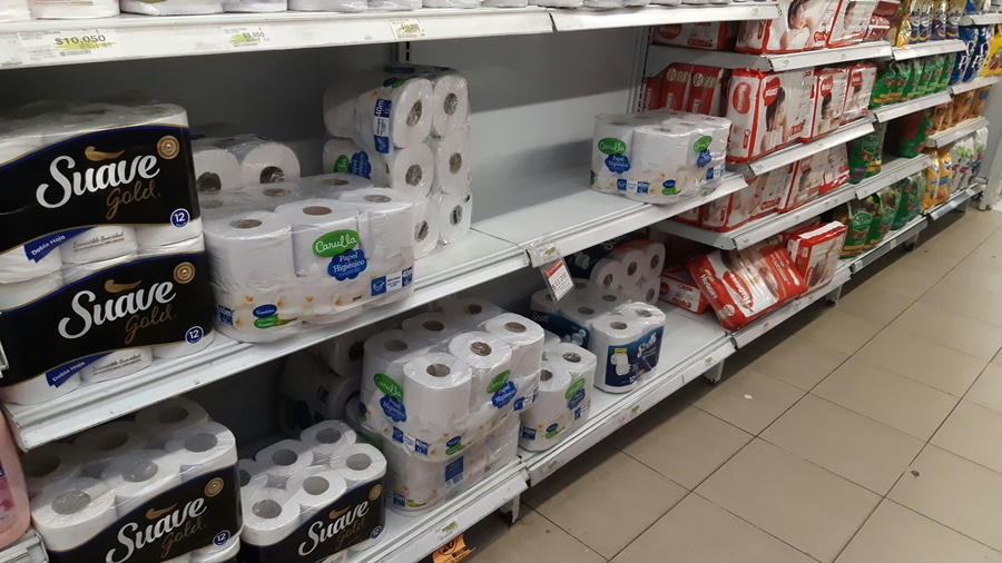 La semana pasada el turno fue para el papel higiénico y algunos productos de aseo como toallitas desinfectantes. Se supone que hoy lunes se volverán a surtir algunos de estos productos, otros ya no se consiguen en el mercado.