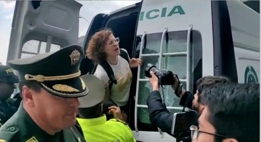 Cerca de 25 jóvenes fueron arrestados ayer y conducidos al Centro de Traslado por Protección, CTP, tras que realizaran un plantón pacifico en las instalaciones del Aeropuerto Internacional El Dorado. Los manifestantes se pararon en la puerta de las llegadas internacionales exhibiendo carteles con la leyenda “We are not afraid” (Nosotros no tenemos miedo), la cual se empezó a usar por los protestantes tras la muerte a manos de un policía del joven estudiante Dilan Cruz, ocurrido en el marco del Paro Nacional que se lleva a cabo contra el gobierno del ultraderechista e impopular gobierno de Iván Duque, y sus medidas económicas.