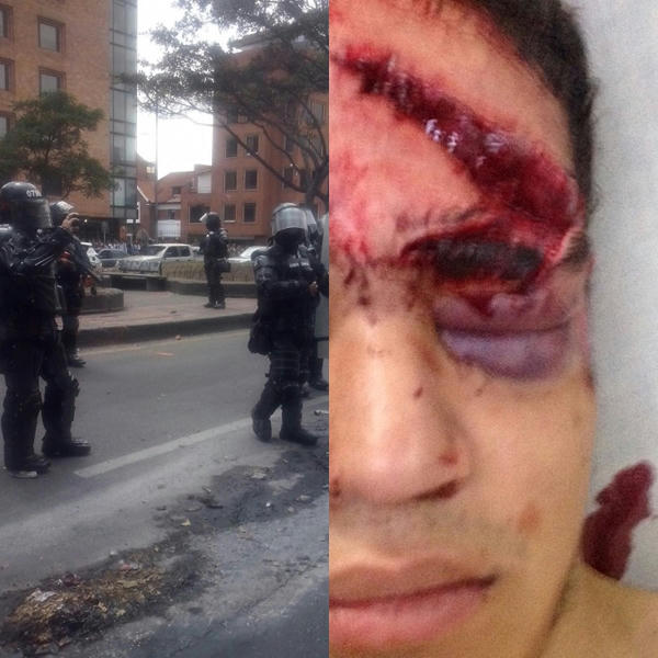 Dos caras de una protesta reprimida… ¿Es esa la Bogotá Mejor para Todos?. (Fotos cortesía y @DanielBejarano_ ).