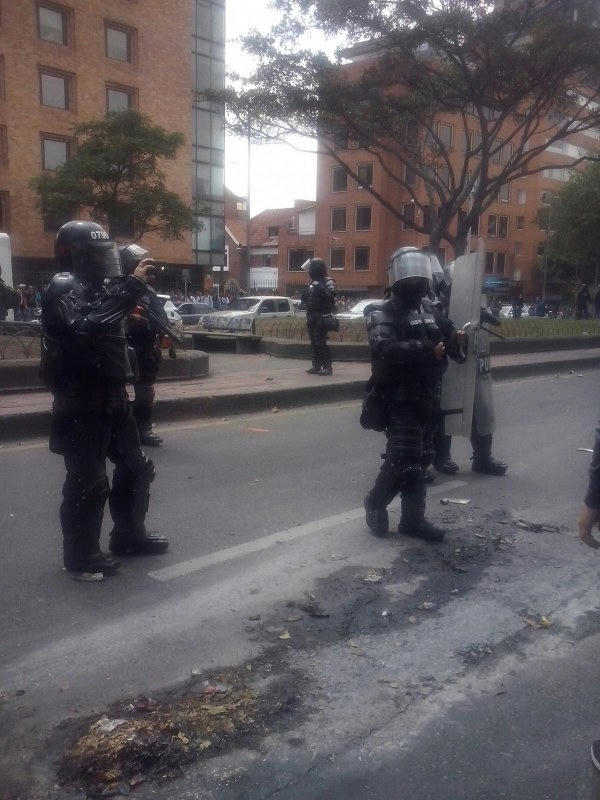 La protesta, según relataron algunos testigos y usuarios de la Red Social Twitter, transcurría con absoluta tranquilidad y no había desmanes, hasta cuando se hizo presente el grupo antidisturbios de la Policía, conocido como Esmad, que con tanquetas y gases lacrimógenos habrían empezado a desalojar a los manifestantes.