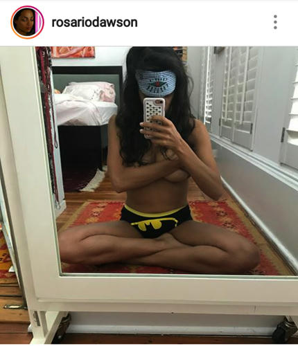 Los 920.575 seguidores de Rosario Dawson, en Instagram, ya no se sorprenden tanto cuando la hermosa mujer comparte con ellos sus fotos desnuda y sube la temperatura de la Internet.