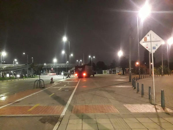 Avanzada la noche y terminadas las marchas, empezaron a circular denuncias sobre una inminente intrusión del escuadrón antidisturbios ESMAD, en predios de la Universidad Nacional, por la puerta sobre la Calle 26.