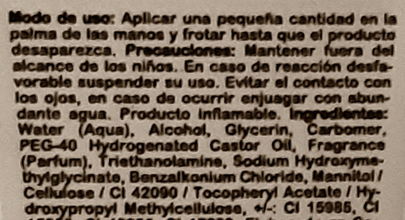 Revisados los ingredientes de dos marcas diferentes de Gel Antibacterial encontraos que contienen algunos de los ingredientes principales mencionados en la fórmula de Susy Mura Ondok. Foto crédito: ACCIÓN 13 Noticias.