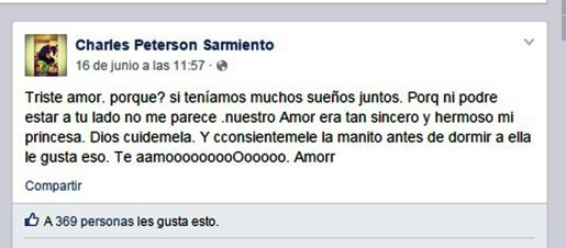 Como datos adicionales se tiene que un análisis somero del perfil de Facebook de Charles Peterson Sarmiento, arroja que el hombre es fan de Criminal Case, un video juego en tiempo real de Facebook cuyo objetivo es descubrir crímenes. Su muro está lleno de publicaciones del juego.