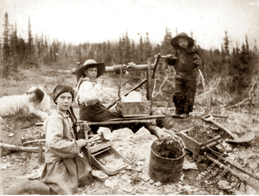La imagen tiene 121 años y corresponde a tres niños sacando agua de una mina de oro en el Yukón…