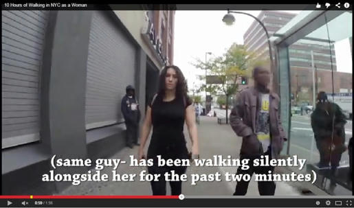 Esa parece ser en ultimas la reflexión que desea producir Rob Bliss, con su vídeo “10 Hours of Walking in NYC as a Woman”, el cual se ha tornado viral en Internet, llegando a reunir 11.666.357 de visitas en Youtube. El vídeo, desarrollado para hollaback, un movimiento creado para acabar con el acoso a las mujeres en la calle, conformado por una red de activistas locales en todo el mundo, muestra a la actriz Shoshana B. Roberts, caminando por las calles de la “Gran Manzana”, la Meca capitalista mundial.