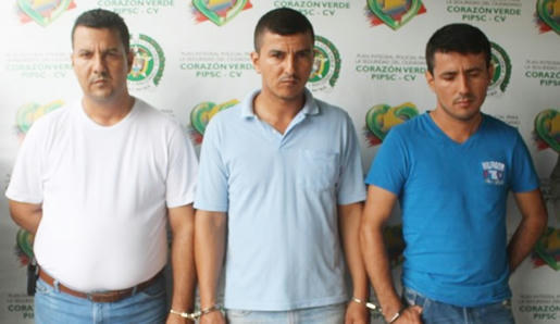 Quince días después del secuestro de la hija del director de la Unidad Nacional de Protección, el empresario Diego Fernando Mora Arango, los hermanos José Wilmer Peñaranda Peñaranda, de 39 años; Diego Armando, de 29 y Óscar Eduardo, de 33, fueron capturados como presuntos responsables del abominable crimen. Foto Policía Nacional de Colombia.