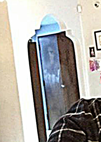 En la autofoto se observa a Peaches con uno de sus hijitos, lo extraño es que sobre el hombro de la joven se aprecia una mano que no debería estar allí, la chica lo describió así: “Este es un detalle de la fotografía en la que se ve una misteriosa mano fantasma en una foto que hice de Astala y mía en el baño.