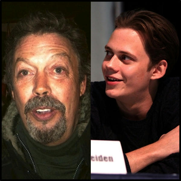 El actor británico Tim Curry, representó al payaso asesino en 1990, y ahora es el turno para el actor sueco Bill Skarsgård. Fotos crédito: G.P. Chicken (en:User:Malchick), y Gage Skidmore.