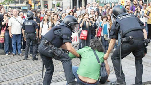 Desde las 6:45 de la mañana de este viernes, efectivos de la Policía autonómica de Cataluña (Mossos d'Escuadra) y la Guardia Urbana, cercaron a los manifestantes y luego se abalanzaron sobre ellos, luego que los manifestantes bloquearon el paso de unos camiones de basura que pretendieron realizar “limpieza” en la plaza, lo cual significaba desmontar y retirar el campamento.