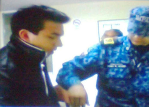 Momento en que Carlos Andrés Cárdenas Gómez, es reseñado por las autoridades al ser trasladado a la Cárcel Nacional Modelo en Bogotá. Cárdenas Gómez fue capturado por efectivos de la SIJIN en la carrera 48 con calle 28-80, cuando salía de su vivienda en el sector del barrio Quinta Paredes, Eran las 10:35 de la mañana del 07 de junio de 2012.