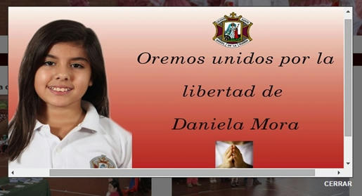 El portal Web del Colegio donde estudia Daniela Mora Prieto, hizo un llamado a la oración por la liberación ilesa de la niña, foto captura de Internet.