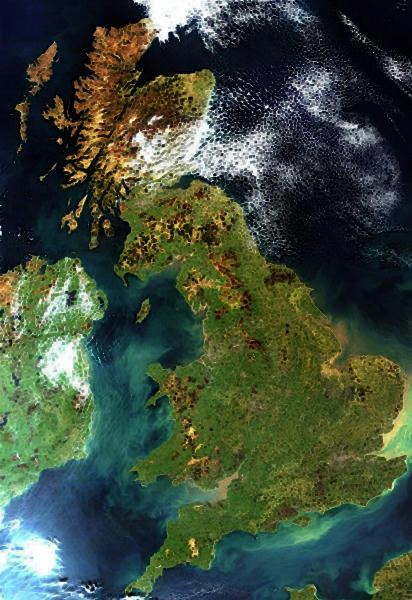 Vista satelital de la Gran Bretaña. Crédito: Jacques Descloitres, MODIS Land Rapid Response Team, NASA/GSFC.