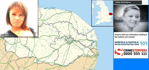El Detective Inspector Jefe Fry Jes, quien lidera el Equipo de investigaciones Conjunto de las Policías de Norfolk y Suffolk, dijo: "Ahora que hemos identificado a Alisa, podemos llevar a cabo investigaciones más enfocadas a establecer lo que sucedió con ella. En particular, queremos hablar con cualquiera que pudiera haber visto Alisa entre el mediodía del martes 30 de agosto de 2011 y la medianoche del martes 6 de septiembre de 2011”.