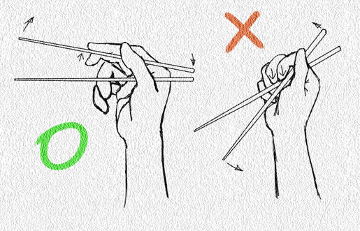 Manera correcta de usar los palillos chinos.