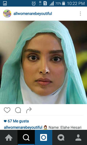Helahe Hesari, nació en Teherán, tiene 32 años y es una actriz de cine. Su primera aparición destacada en el Gran Plató fue en 2007 en el film “Notfe Shoom”.