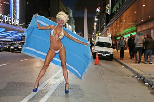 Por si queda duda, la griega Xipolitakis, reincidió en Twitter, en esta ocasión dando rienda suelta a su amor por Argentina en las pasadas fiestas patrias del 09 de julio, y posó otra vez ligera de ropas, en plena Avenida Corrientes y con el celeste y blanco de la bandera. Las fotos fueron acompañadas del siguiente post "Argentina te llevo en mi cuerpoooo.... a festejar este 9 de Julio con todooooo jajaaaa los quierooooooooooo"