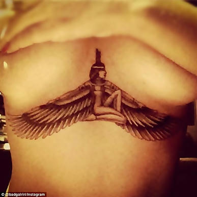 La intérprete de éxitos discográficos como A Girl Like Me, Good Girl Gone Bad o Unapologetic, actriz de cine y víctima de violencia domestica por parte de Chris Brown, no ha dudado en mostrar en Twitter sus tatuajes, por ejemplo.