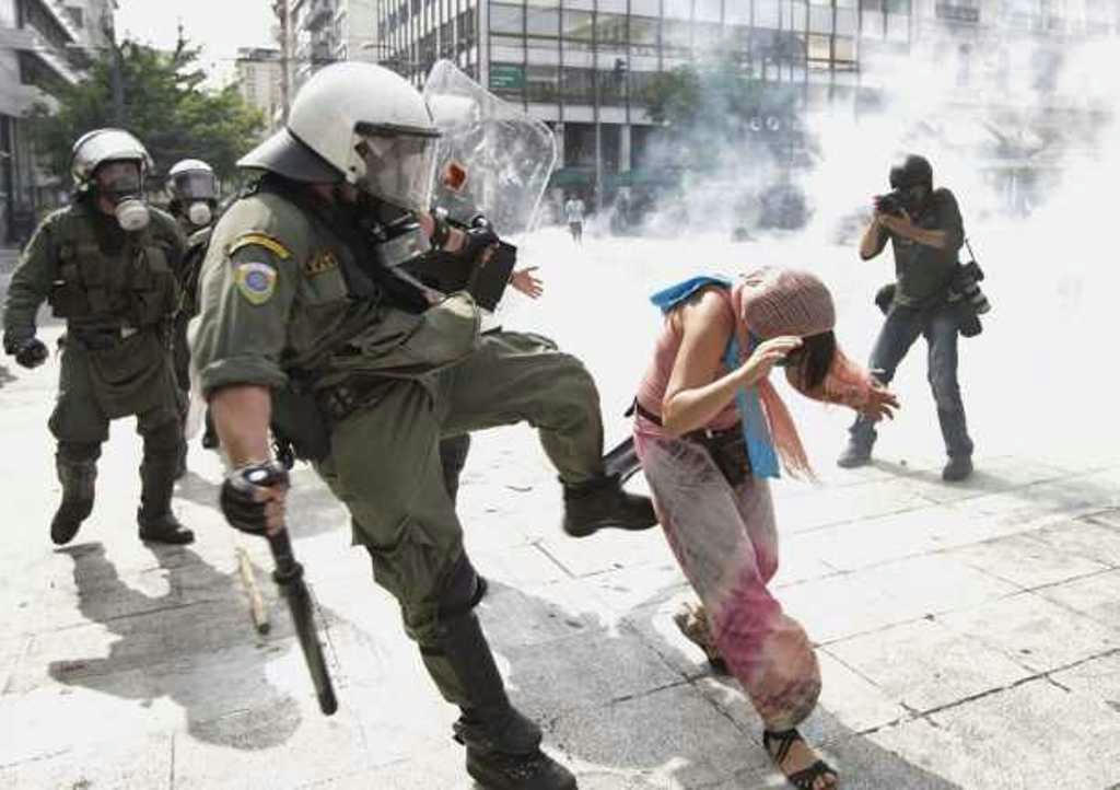 Grecia, se paraliza por un paro general y más de 25.000 Ciudadanos Indignados, manifestantes bloquean el acceso al edificio del Parlamento donde se discuten nuevas reformas económicas que redundaran en dramáticos recortes contra los que se alzan los protestantes.