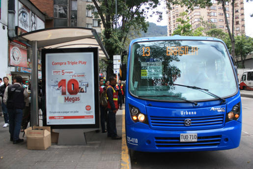 Paradero del SITP en una calle de Bogotá. Foto Andybog0231.