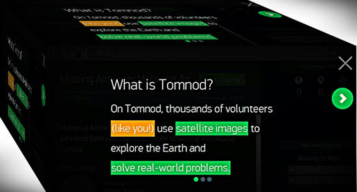 DigitalGlobe, reorientó algunos de sus cinco satélites para enfocarlos en un área de más de 24.000 kilómetros cuadrados del Mar de China Meridional frente a la costa vietnamita, donde desde hace seis días 40 barcos y 24 aviones de una decena de países buscan al avión Boeing 777-200, de Malaysia Airlines, que viajaba desde Kuala Lumpur a Beijing, y que desapareció del radar el pasado sábado 08 de marzo, (viernes 07 en Occidente), y luego, a través de su portal Tomnod, las puso a disposición de los miles de voluntarios que revisan cuadrantes con una resolución de 50 centímetros por píxel en busca de restos del Boeing 777-200, o de cualquier otra pista de la aeronave las cuales marcan para que otros los analicen.