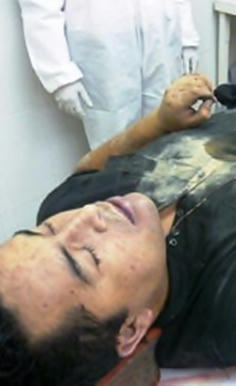 Foto del cadáver del hombre identificado como Heriberto Lazcano Lazcano, divulgada por la Semar.