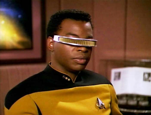 En la serie de televisión de First-run Syndication transmitida entre el 28 de septiembre de 1987 al 23 de mayo de 1994, una saga de la legendaria serie Star Trek de 1966 – 1969, el Teniente Geordi La Forge, quien nació el 16 de febrero de 2335 en la Confederación Africana en la Tierra, como invidente, se convirtió en oficial de la Flota Estelar e Ingeniero Jefe de las naves USS Enterprise D y E., gracias a un visor que recibió después de su quinto cumpleaños.