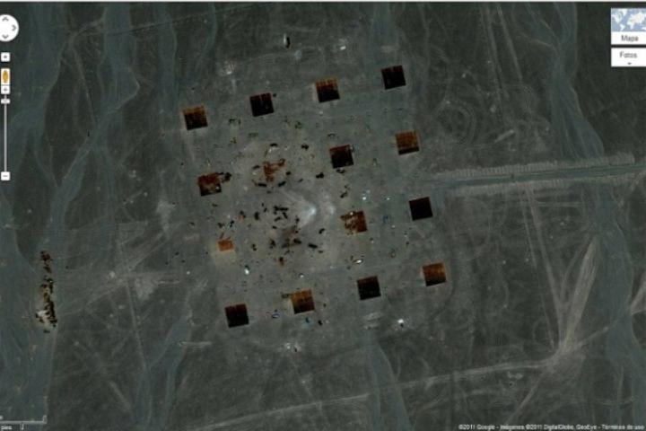 Las misteriosas estructuras o dibujos en la superficie desértica han despertado todo tipo de especulaciones las que van desde gigantescas señales dirigidas a posibles viajeros interestelares, mapas de las calles de Washington y New York, o un experimento ultra secreto chino hasta líneas usadas por el gobierno para alinear sus satélites espías desde el espacio exterior.