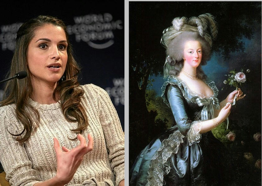 Reina Rania Al Abdullah de Jordania y Reina María Antonieta de Francia (Fotos https://realeza.foros.ws y Wikipedia)