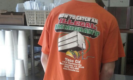 El tema saltó a la luz pública a inicios de este 2013, cuando un profesor tomó una foto a un empleado del restaurante Taco Cid, de la ciudad de West Columbia, Condado de Lexington, Carolina del Sur, vistiendo una camiseta de colores verde, blanco y rojo, con una imagen de una caja de madera cubriendo dos tacos, y la leyenda "How to Catch an Illegal Immigrant".