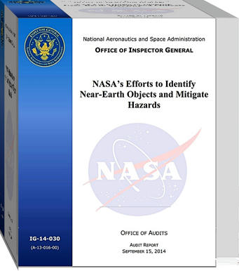 El informe elaborado por el inspector general de la NASA, Paul K. Martin, fechado septiembre 15 de 2014 y titulado “NASA’s Efforts to Identify Near-Earth Objects and Mitigate Hazards”, (Esfuerzos de la NASA para identificar objetos cercanos a la Tierra y mitigar sus riesgos), el cual consta de 44 páginas en las que para nada deja bien parado el programa, fue publicado ayer lunes.