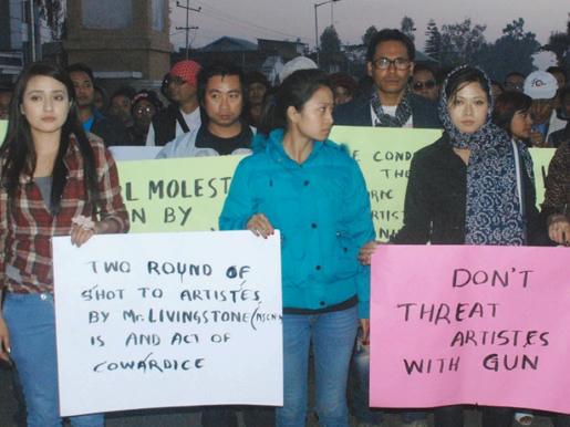 El asalto sexual a la actriz, que ha sido condenado por The All Manipur Women Association (AMAWOVA), prendió también una oleada de disturbios donde los protestantes exigen el arresto de Livingston.