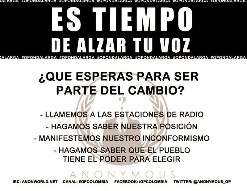 Sobre la Ley Lleras, Anonymous, continua su oposición basados en que: “Nos preocupa el poder que se dan a los ISP y los vacíos que permitirían ‘chuzar’ a los ciudadanos.