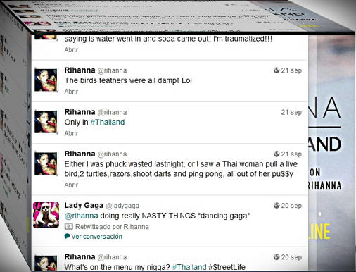 «Anoche vi a una mujer tailandesa sacar de su vagina un pájaro vivo, dos tortugas, cuchillas, disparar dardos. Estoy traumatizada», publicó en su perfil de Twitter la sensual cantante Rihanna el pasado 21 de septiembre de 2013, refiriéndose al show erótico que presenció en la isla de Phuket, una de las provincias meridionales (changwat) de Tailandia.