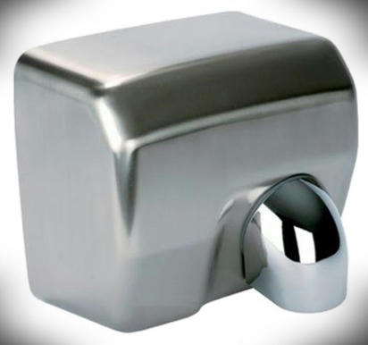 Los secadores de manos son del tipo de secadores por aspersión, donde se atomiza el agua de las manos usando una corriente a contraflujo de aire caliente que evapora el líquido, de modo que caen las partículas sólidas que se separan de la corriente de gas, por no ser volátiles. La aspersión se hace por medio de toberas o difusores de alta velocidad.