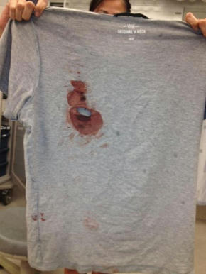 Las redes sociales se convirtieron en el escenario donde las víctimas del fatídico tiroteo del teatro empezaron a divulgar los detalles de lo que ocurrió adentro. El usuario identificado solo como themurderator, publicó en Reddit tres fotografías, la primera esta donde se observa una camiseta ensangrentada con lo que sería un agujero de bala, la segunda muestra una herida de bala y la tercera a una víctima en una camilla. Con las fotos, el hombre posteó “i am one of the 50 wounded in the aurora theatre shooting. here are a few photos of my very lucky but nonethless terrifying brush with death. my thoughts go out to those less fortunate than me.”, (Yo soy uno de los 50 heridos en el tiroteo del teatro. Aquí hay algunas fotos de mi muy afortunado encuentro terrorífico con la muerte. Mis pensamientos están con aquellos menos afortunados que yo”.