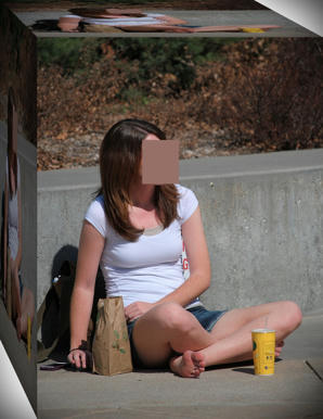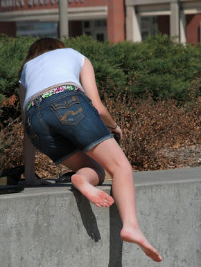 Sin embargo, cualquier lugar público, incluso un supermercado puede ser usado para obtener fotos de chicas desprevenidas. Estas fueron subidas a un sitio especializado en fotos “Caseras Amateur”, ignoramos en qué país fueron tomadas, tal vez en España, pero muy probablemente la incauta joven nunca se ha enterado que su imagen circula por la Red.